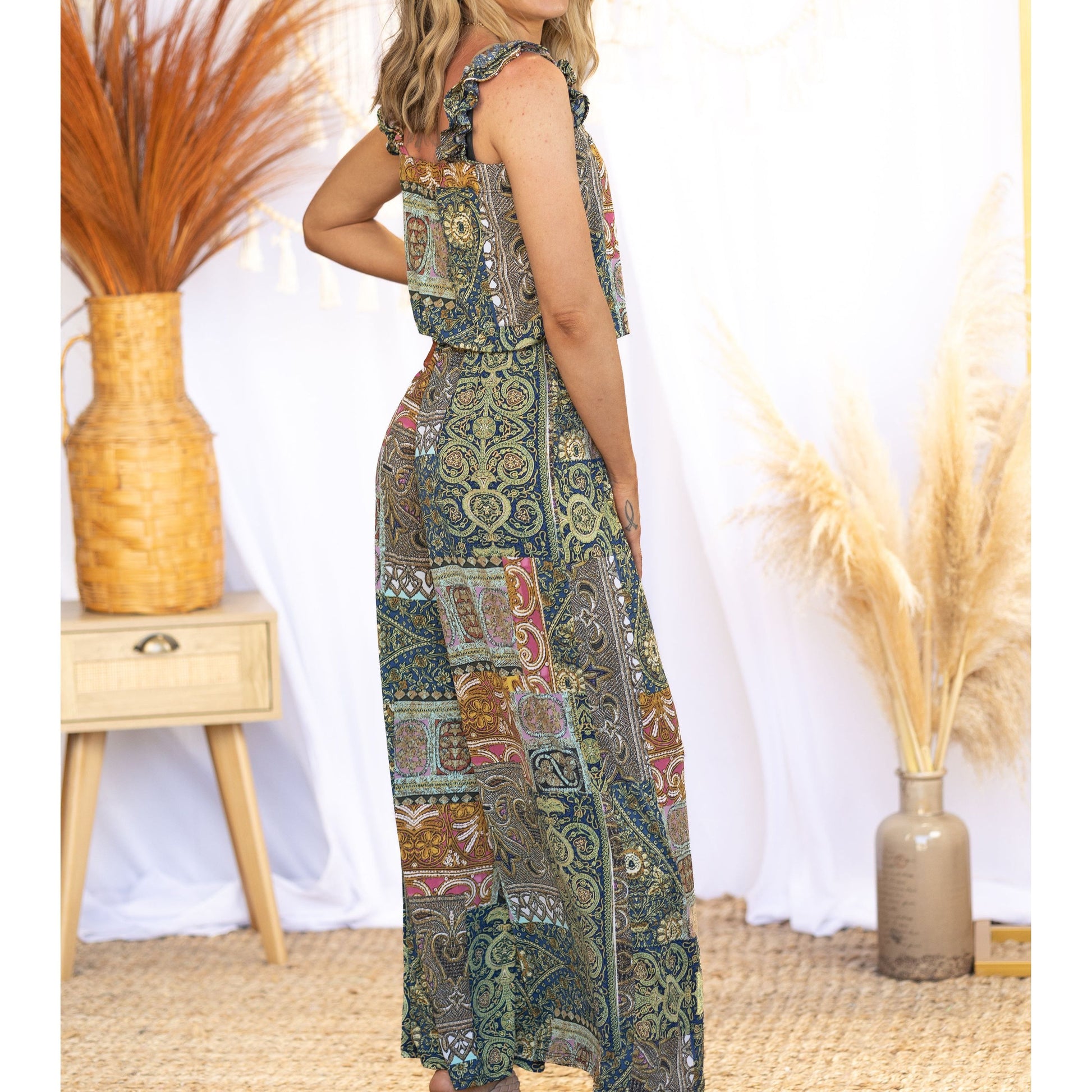 Pop on our Atlantis Jumper and sail away in style! With an eye-catching ITY print, flattering square neck, and flowy ruffled shoulder straps, it's the perfect pick for the adventurous fashionista. So set sail and make waves!