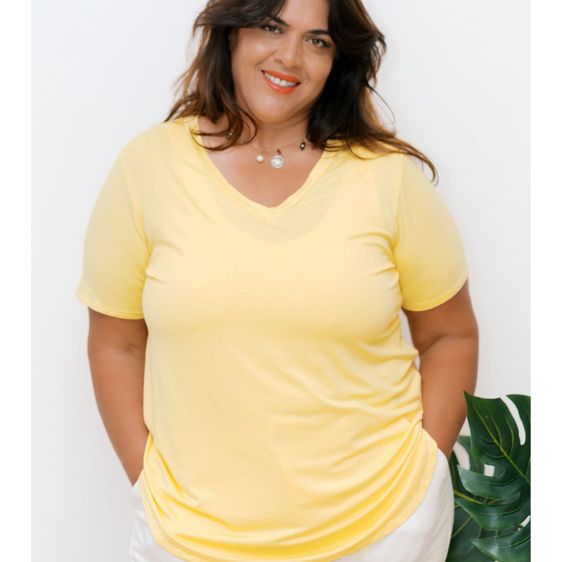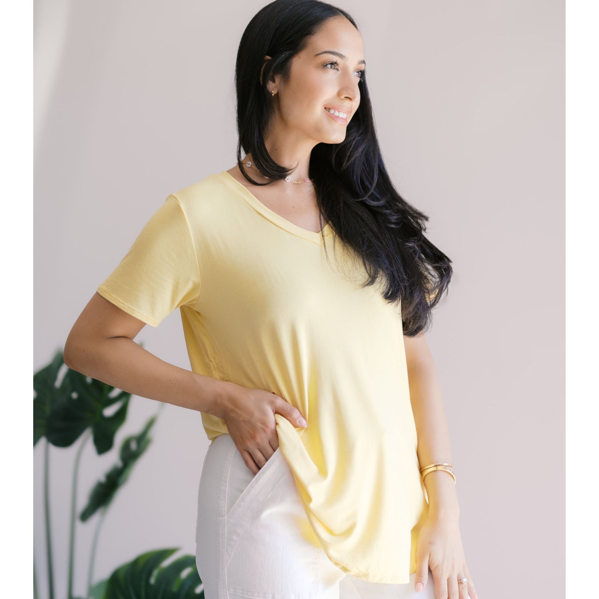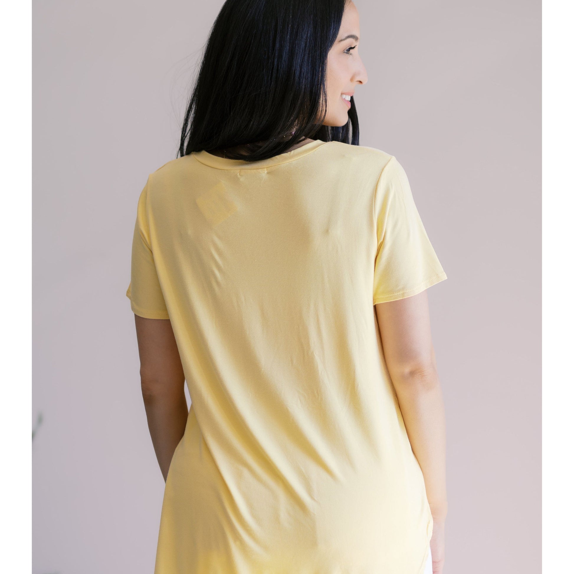 Get ready to go bananas with the Banana Rama short sleeve shirt! Made from soft jersey knit, this v-neck shirt features short sleeves and a playful dolphin hem. Perfect for any casual day, this shirt adds a touch of fun to your wardrobe.
