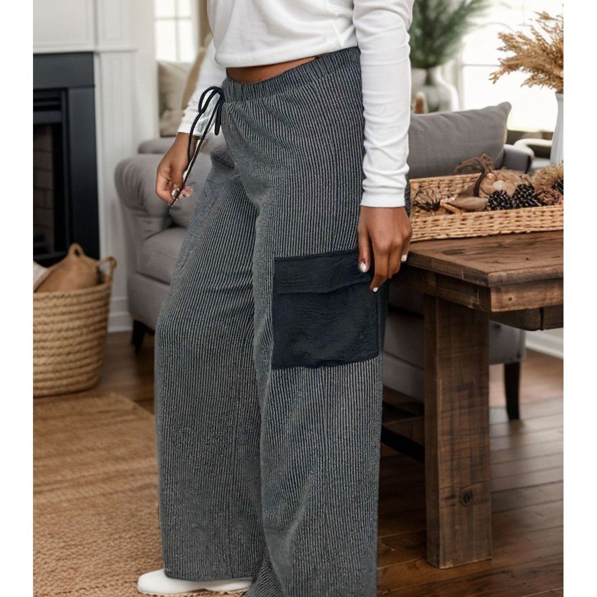 Get ready to lounge in style with our Campfires & Cocoa Urban Pants! Featuring an elastic waist for ultimate comfort, convenient side pockets, and a drawstring for the perfect fit. The urban ribbed fabric is extra cozy, making these pants perfect for relaxing at home or running errands. Stay comfortable and stylish with these quirky and fun pants!