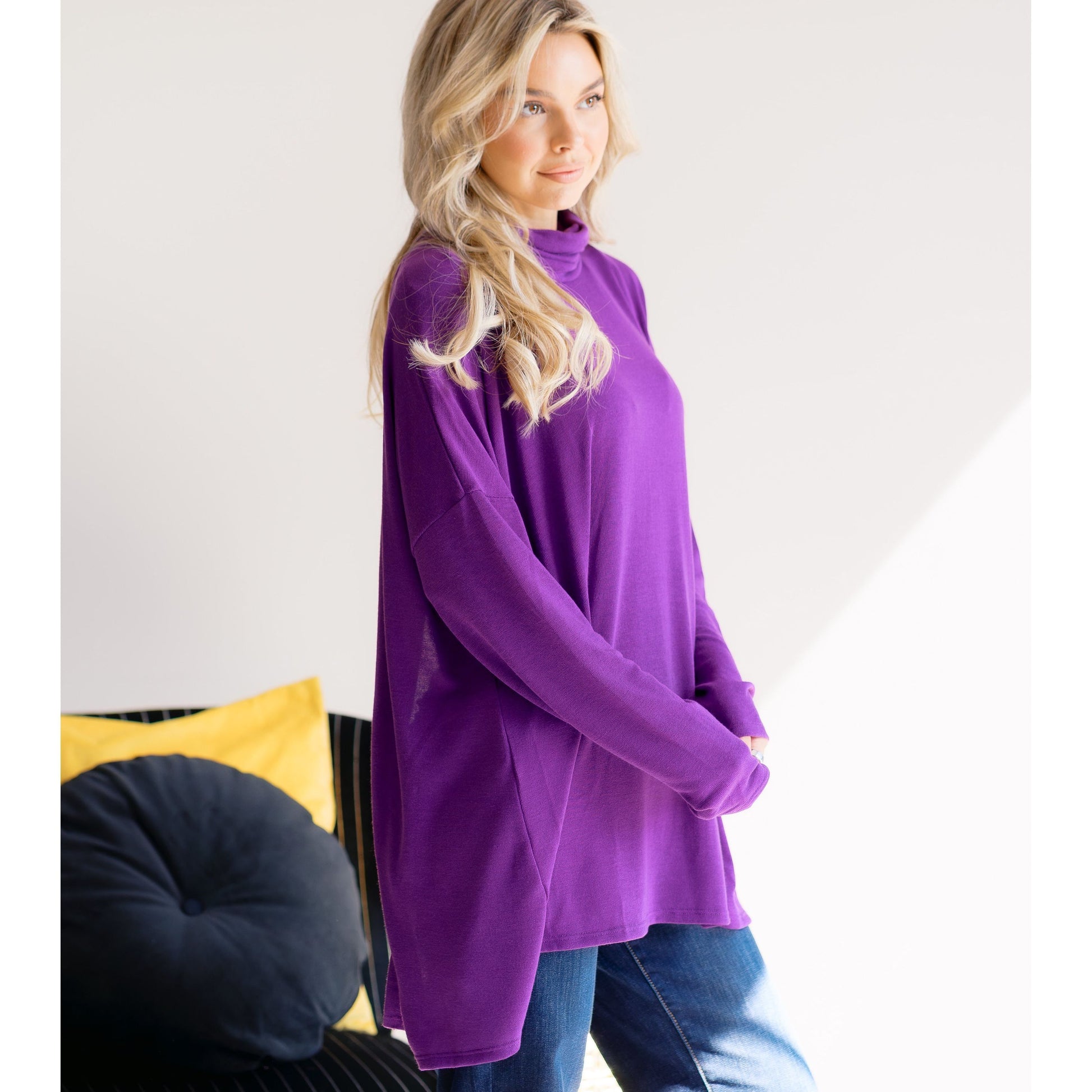 Stay cozy and effortlessly stylish in the Charmed in Chic Pullover. This lightweight knit features a playful purple hue, a snug mock neck, and long sleeves for added warmth. Its relaxed fit keeps comfort front and center, making it perfect for lounging or layering on those breezy days. Add a pop of color and charm to your wardrobe with this easygoing favorite.