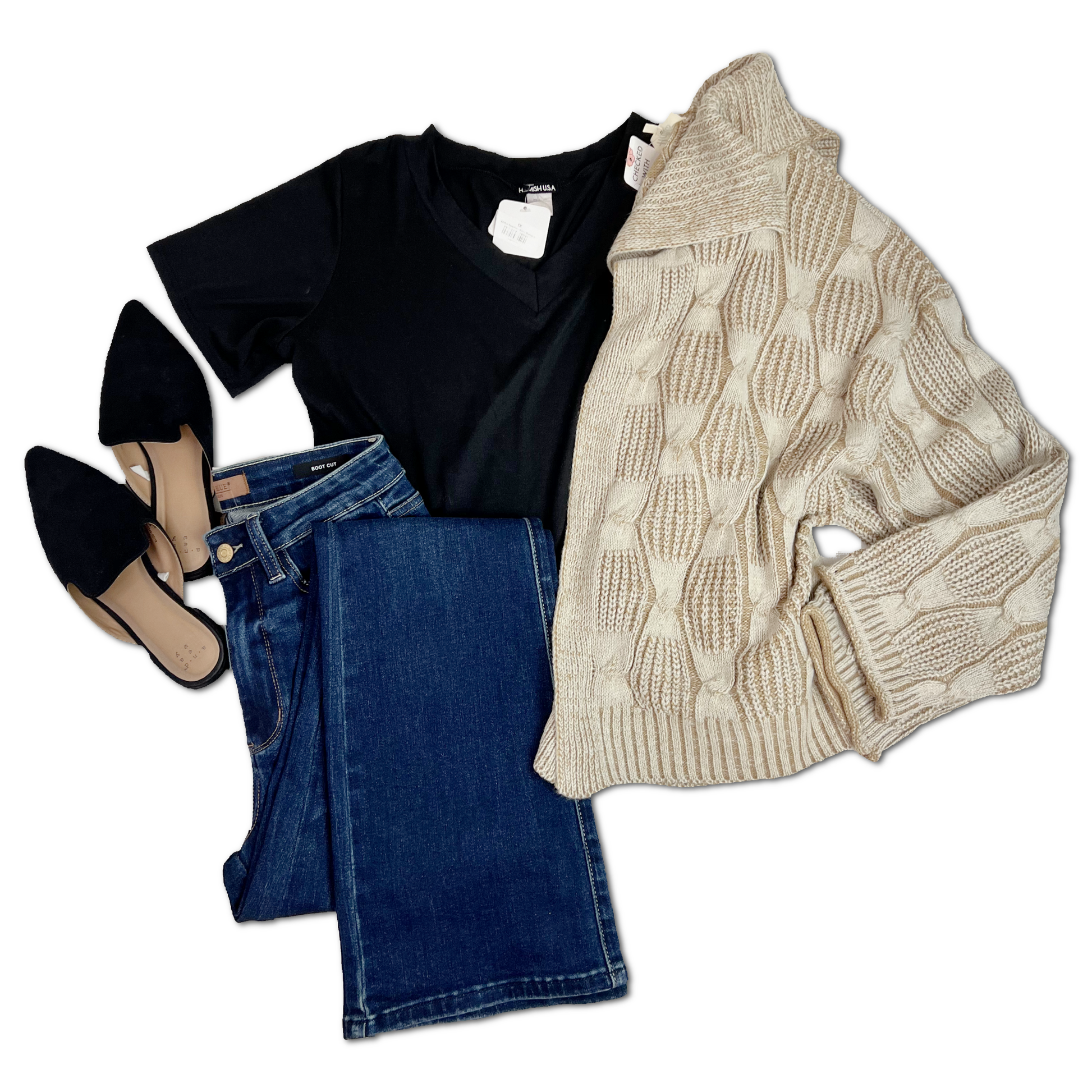 Bundle up in the playfully textured Copenhagen Knit Cardigan! Featuring a thick collar and long sleeves, this cardigan will keep you warm and stylish all season long. Its open face design allows for easy layering, making it a versatile and cozy addition to your wardrobe.