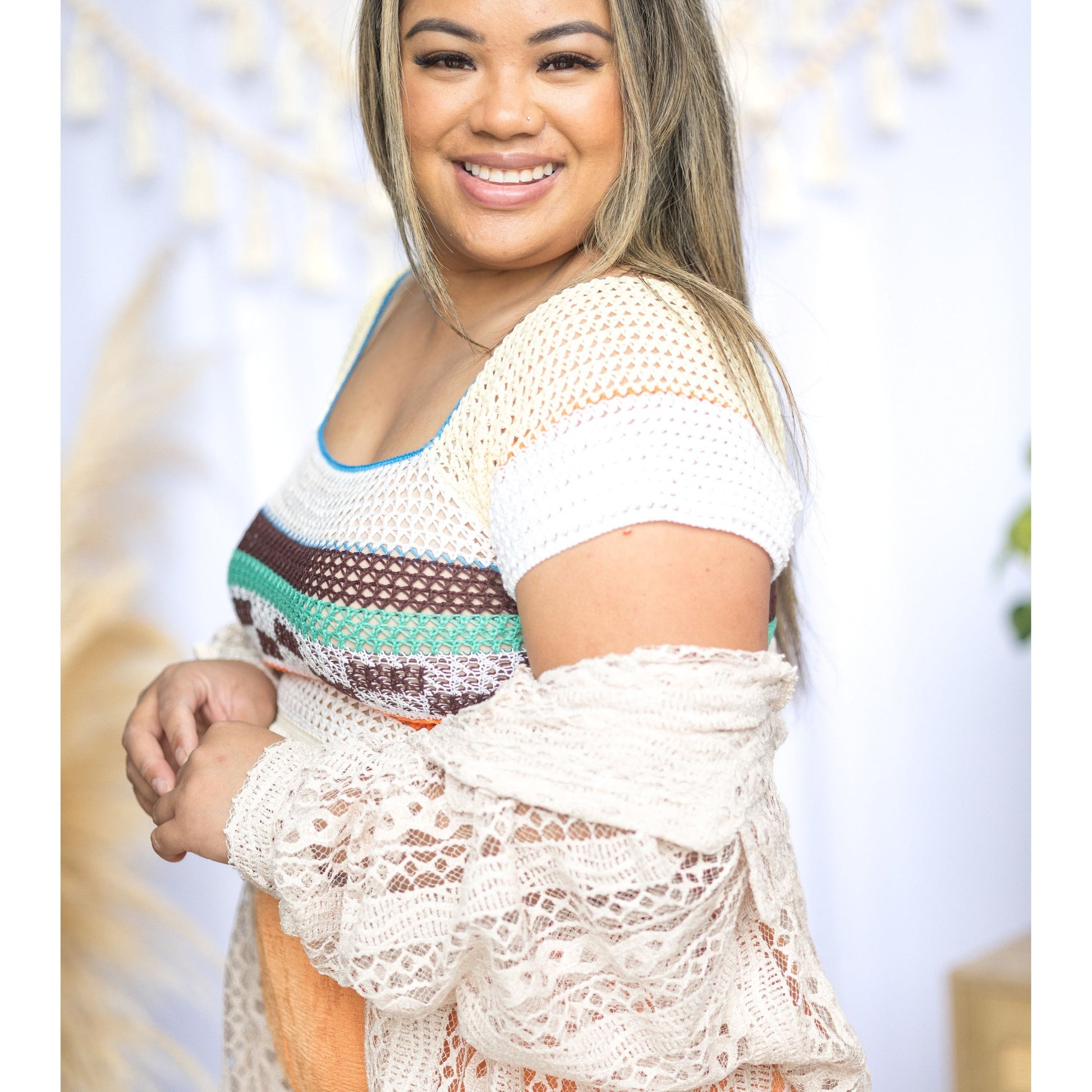 This crochet top is a total dream! Featuring a square neckline, short sleeves and fringed hem, you will feel free to do anything in this top!