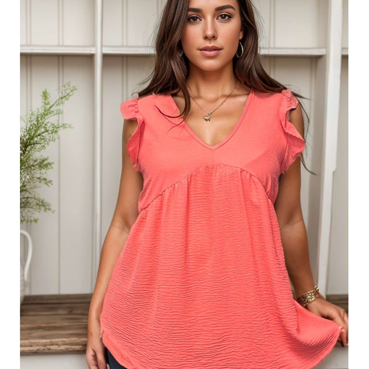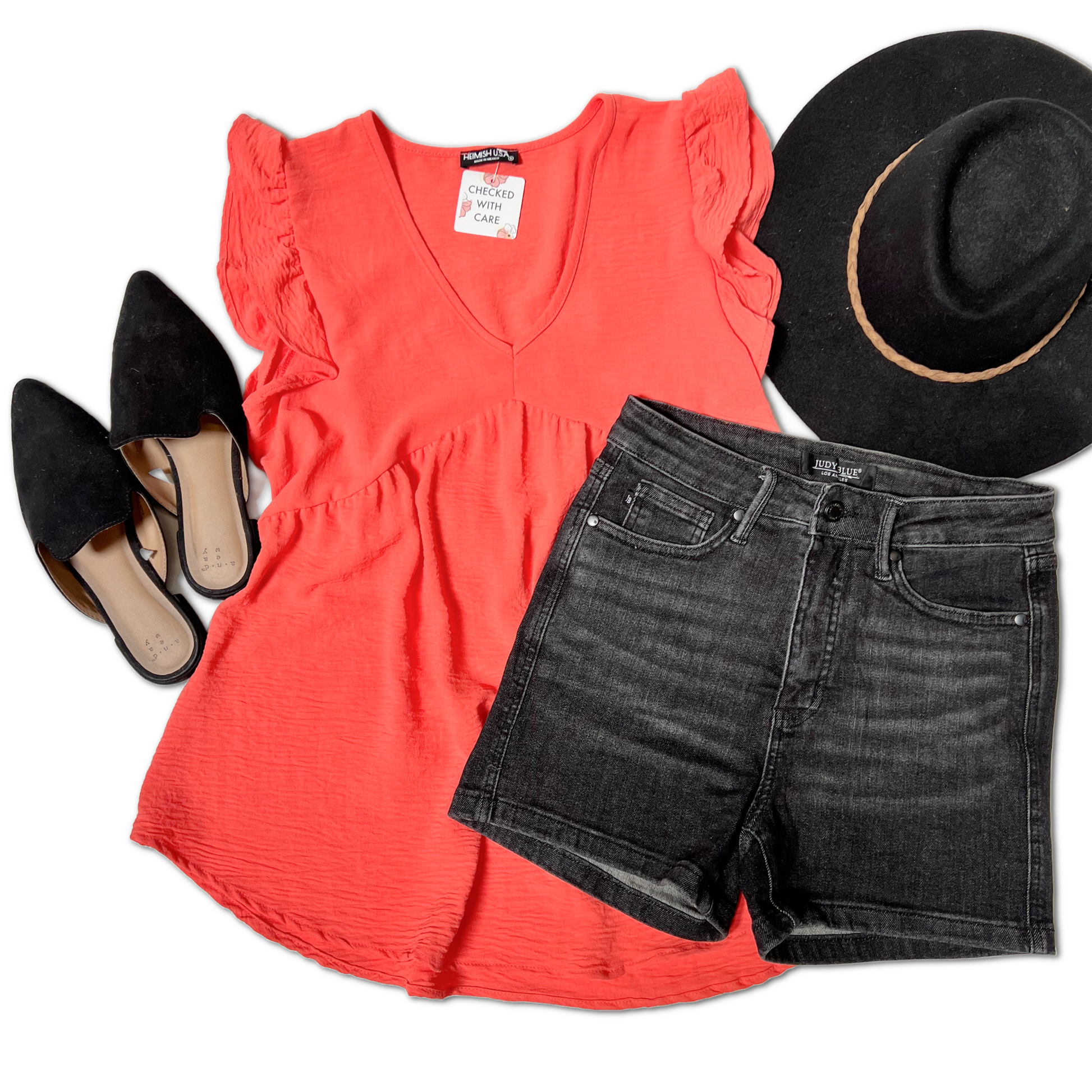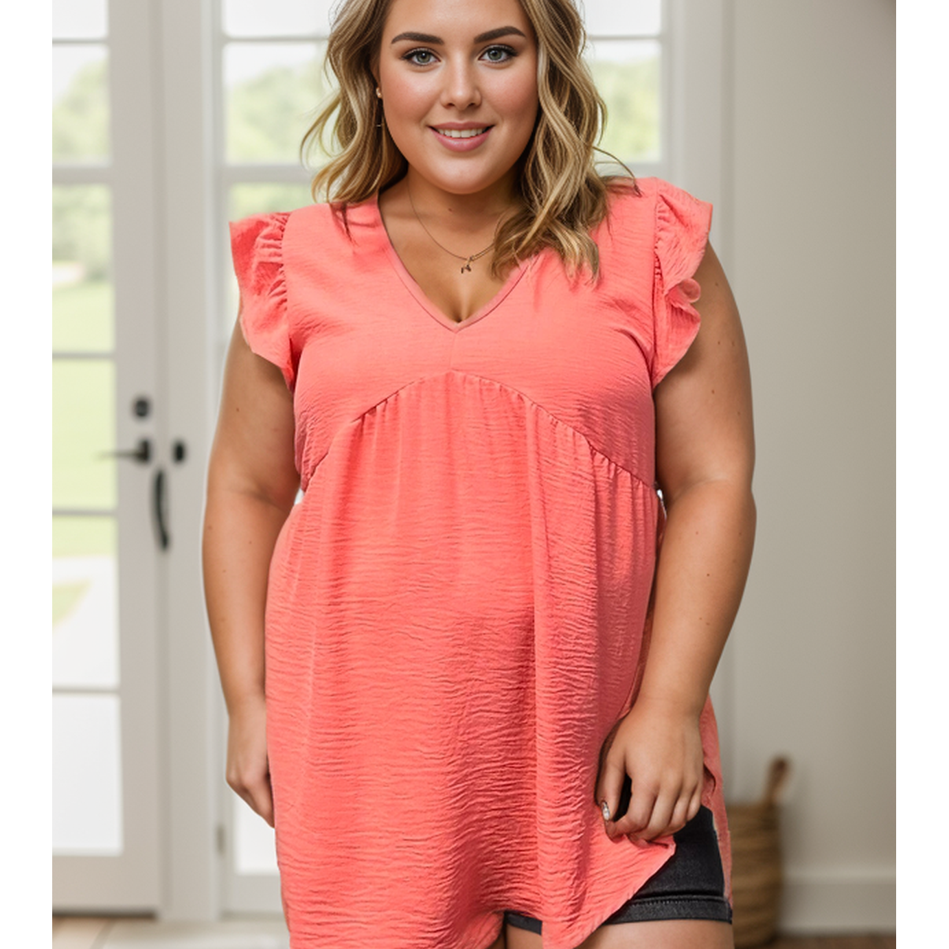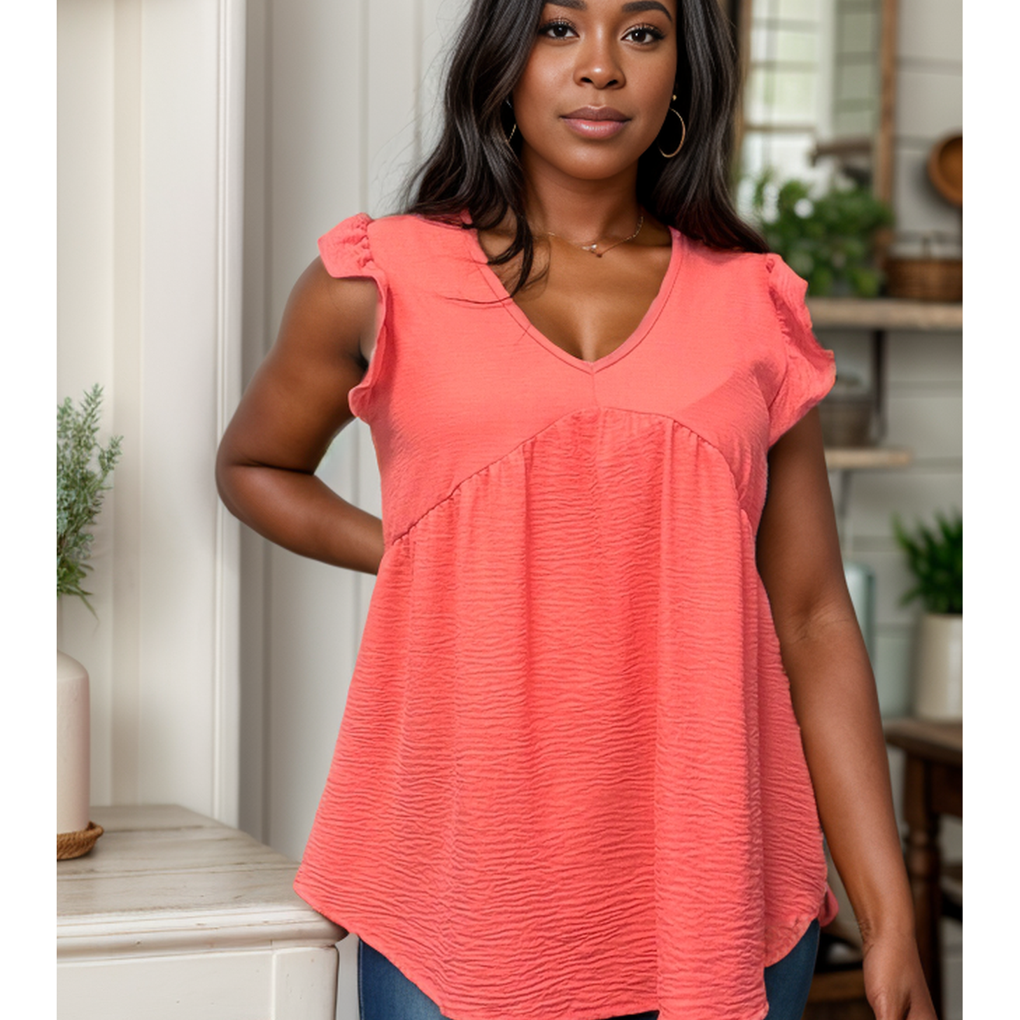Indulge in the whimsical feel of our Feel The Flutter Top - complete with butterfly short sleeves, a stylish v neck, round hem detail, and a flattering babydoll top fit. This solid tee will make your heart flutter every time you wear it.