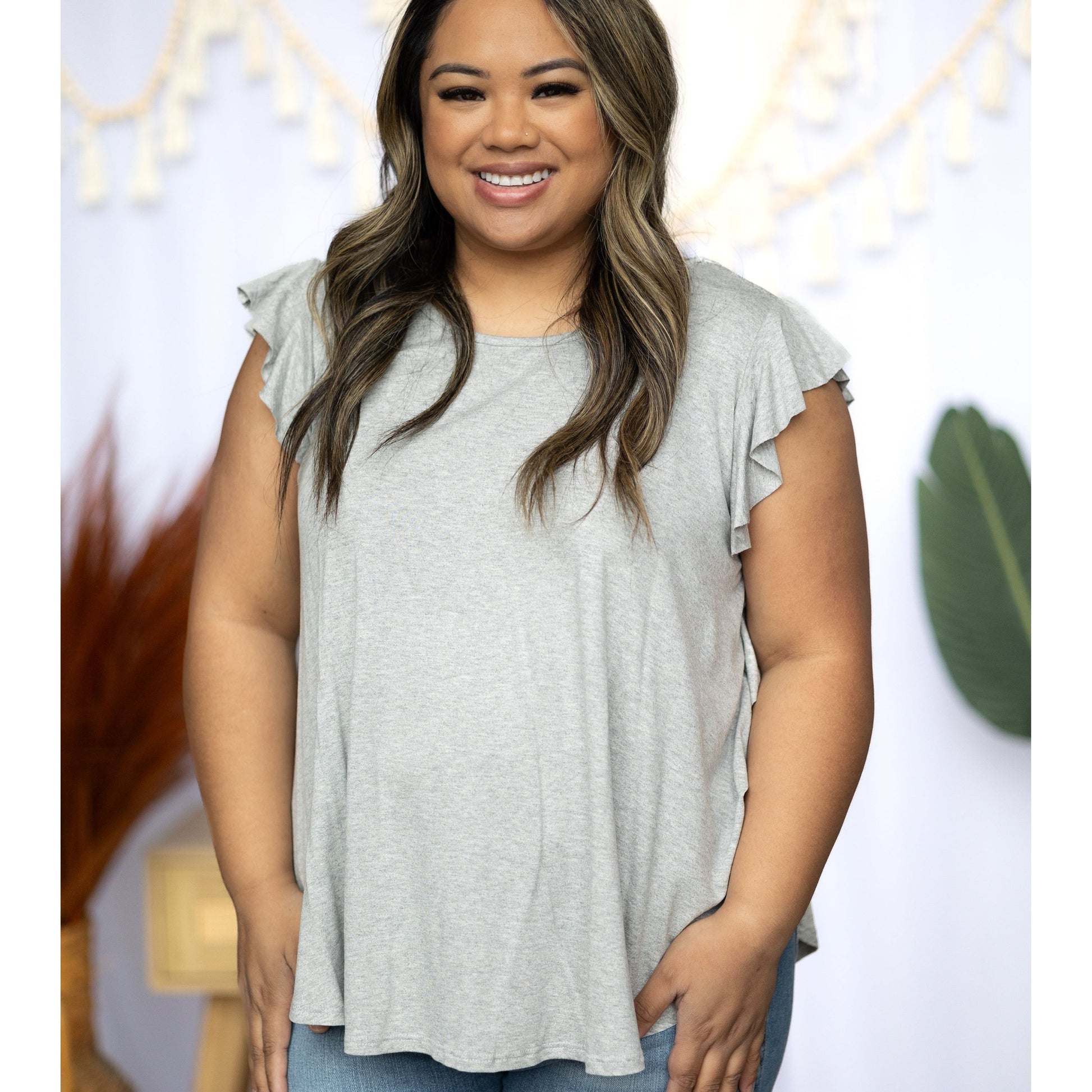 Lend your wardrobe a cool, breezy touch with the "Flutter By" top! Perfect for summer days, its lightweight design and relaxed fit keeps things comfy, while the ruffle sleeve and dolphin hem give it flair - perfect for making a statement without trying too hard. Ready to ruffle some feathers?