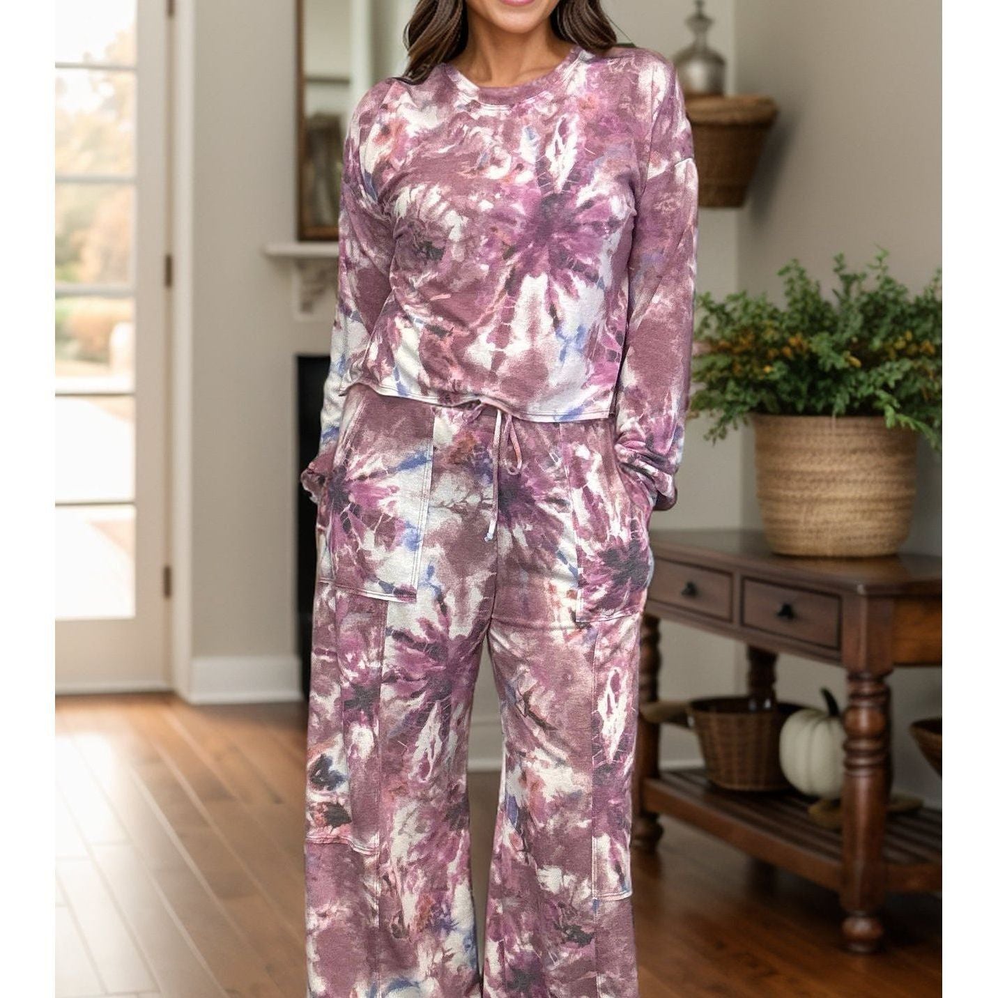 Get your vibes on with the Galaxy Vibing Long Sleeve Top! This trendy top features a cropped length for a flattering fit, tie dye design for a unique and playful look, and long sleeves to keep you warm. With a round neckline and soft terry fabric, this top is perfect for lounging or a casual day out.