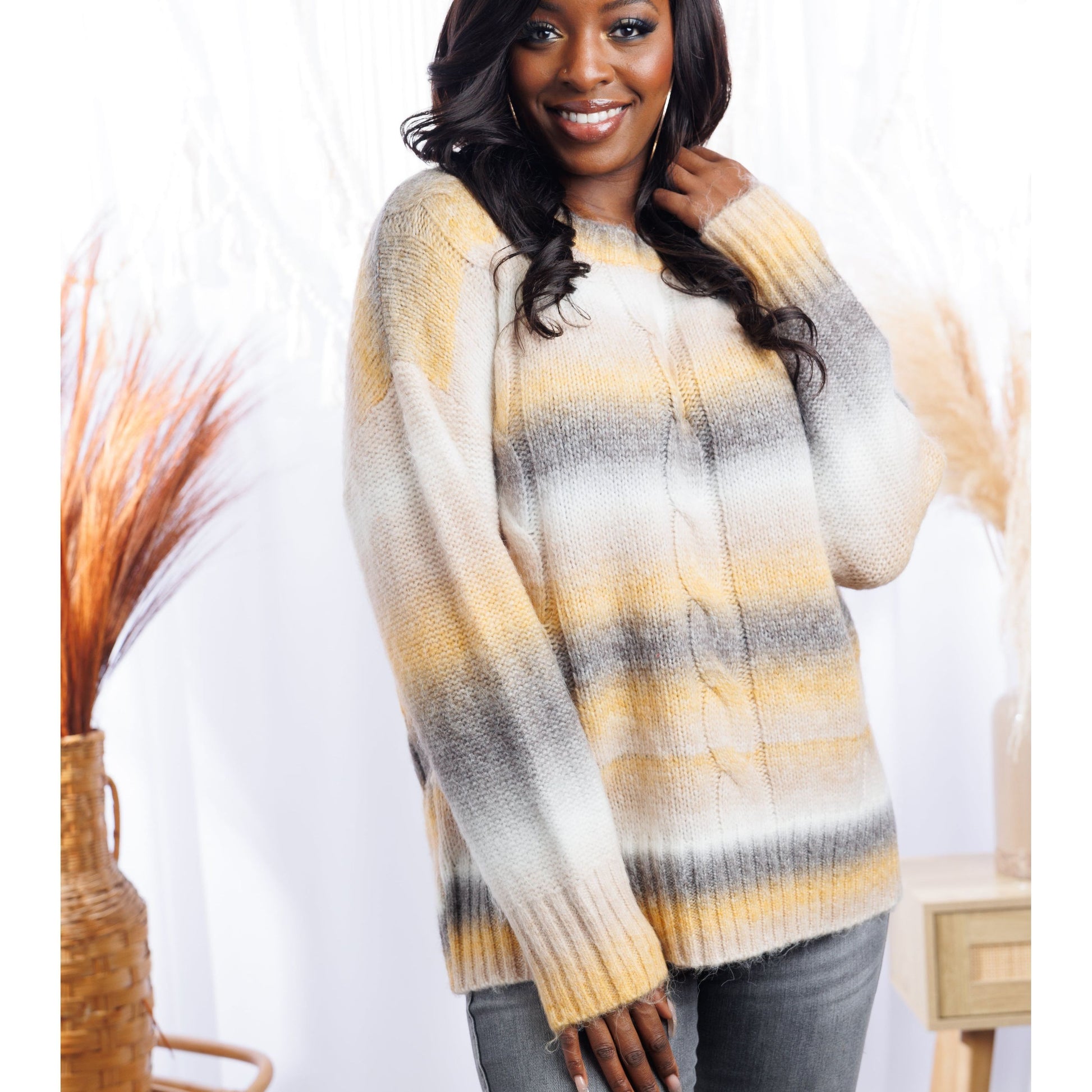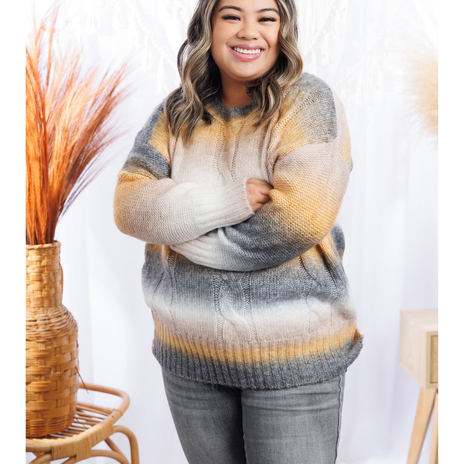 Gradually change up your wardrobe with this gradient-hued sweater. Crafted from soft and cuddly brushed knit, it features a round neck and long sleeves. Slip it on and pull up the cozy vibes!