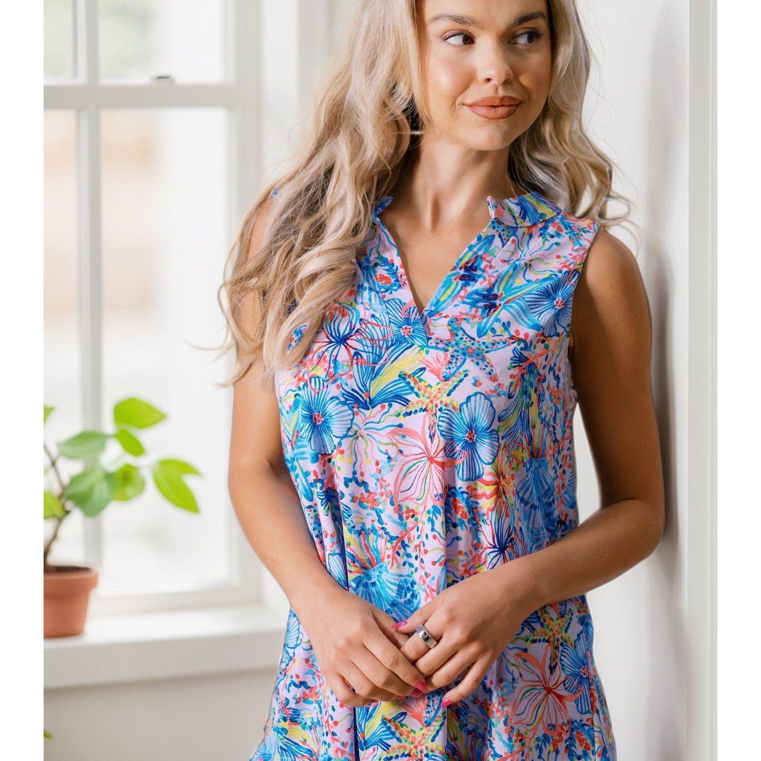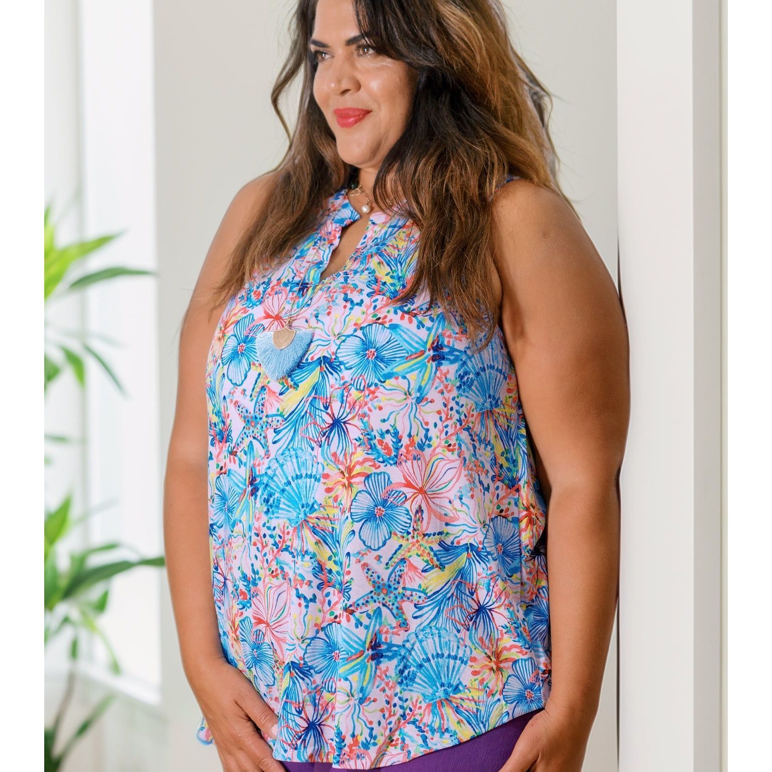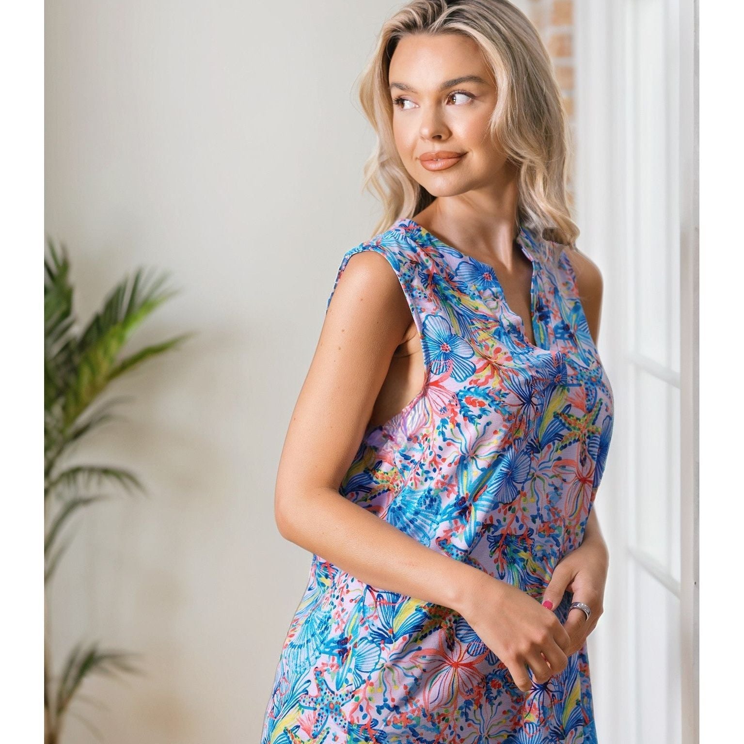 Escape to paradise with our Island Escape Tank! Featuring a vibrant a-line bodice with a split neckline and mandarin collar, this tank offers a breezy and relaxed fit perfect for those warm days. Plus, it's non-sheer, stretchy, and wrinkle-free for easy wear and maintenance. No more fuss, just pure island vibes!
