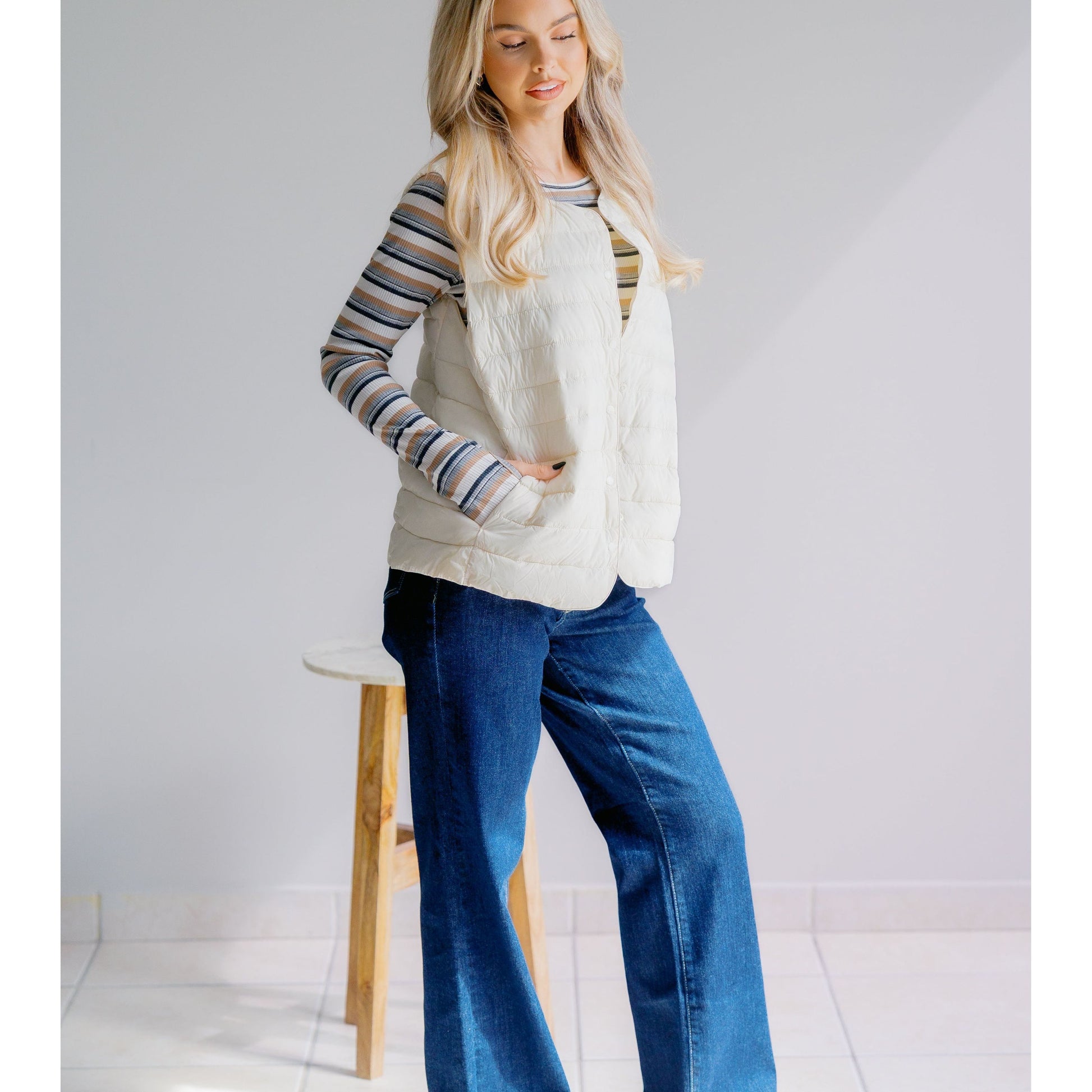 Wrap yourself in fun and warmth with the Ivory Glow Vest. Crafted from quilted fabric, this sleeveless piece promises cozy comfort. Featuring button closures and side pockets, it’s a charming layer to add to any outfit. Stay warm and effortlessly stylish with the Ivory Glow Vest!