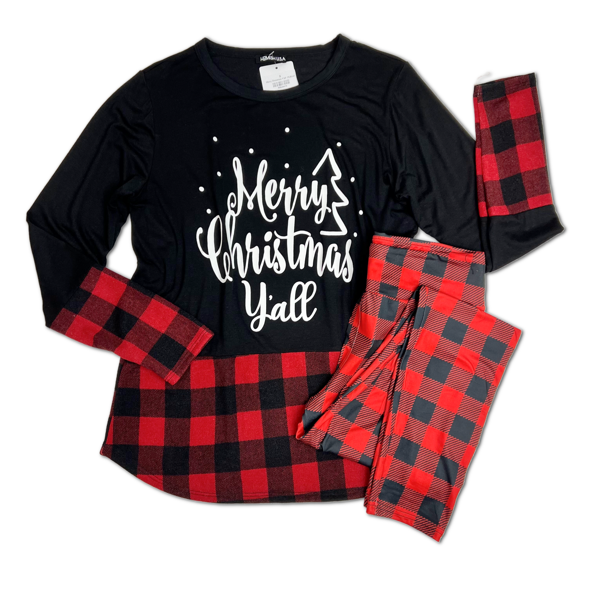 Spread some holiday cheer this season with our 'Merry Christmas Y'all' Pullover! This cozy top features a solid black body with a plaid contrast and long sleeves to keep out the chill. The round neckline is finished off with a bold Merry Christmas Y'all Print - so everyone will know you're ready to celebrate! Ho Ho Ho!