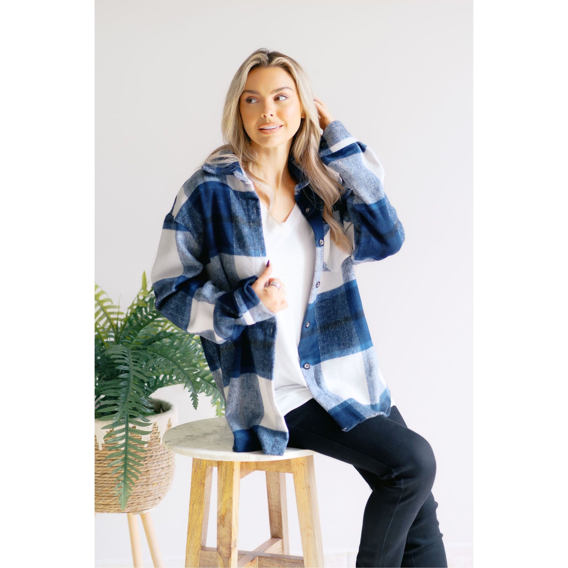 Embrace timeless style with the Moonlight Plaid button-down shacket. Crafted from warm, soft flannel, its classic checkered pattern adds a cozy yet polished touch to your everyday wardrobe. Perfect for casual outings or daily wear, this versatile piece keeps you comfortable and effortlessly stylish all season long.