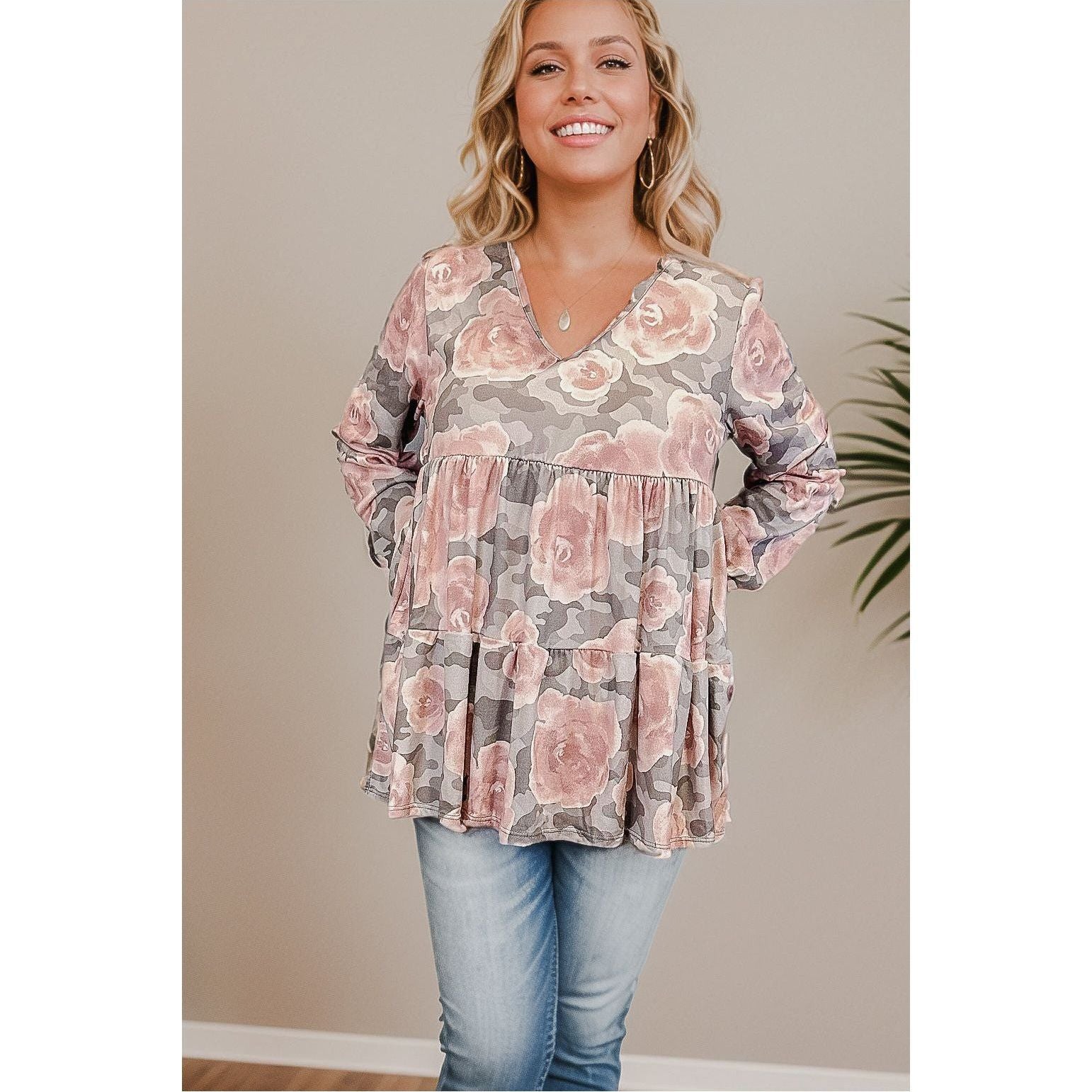 The Mystic Floral Babydoll is the perfect combination of comfort and style. With long bubble sleeves, a v-neck, and an empire hem, it offers a relaxed and flattering fit. The delicate floral print adds a touch of femininity to any outfit.