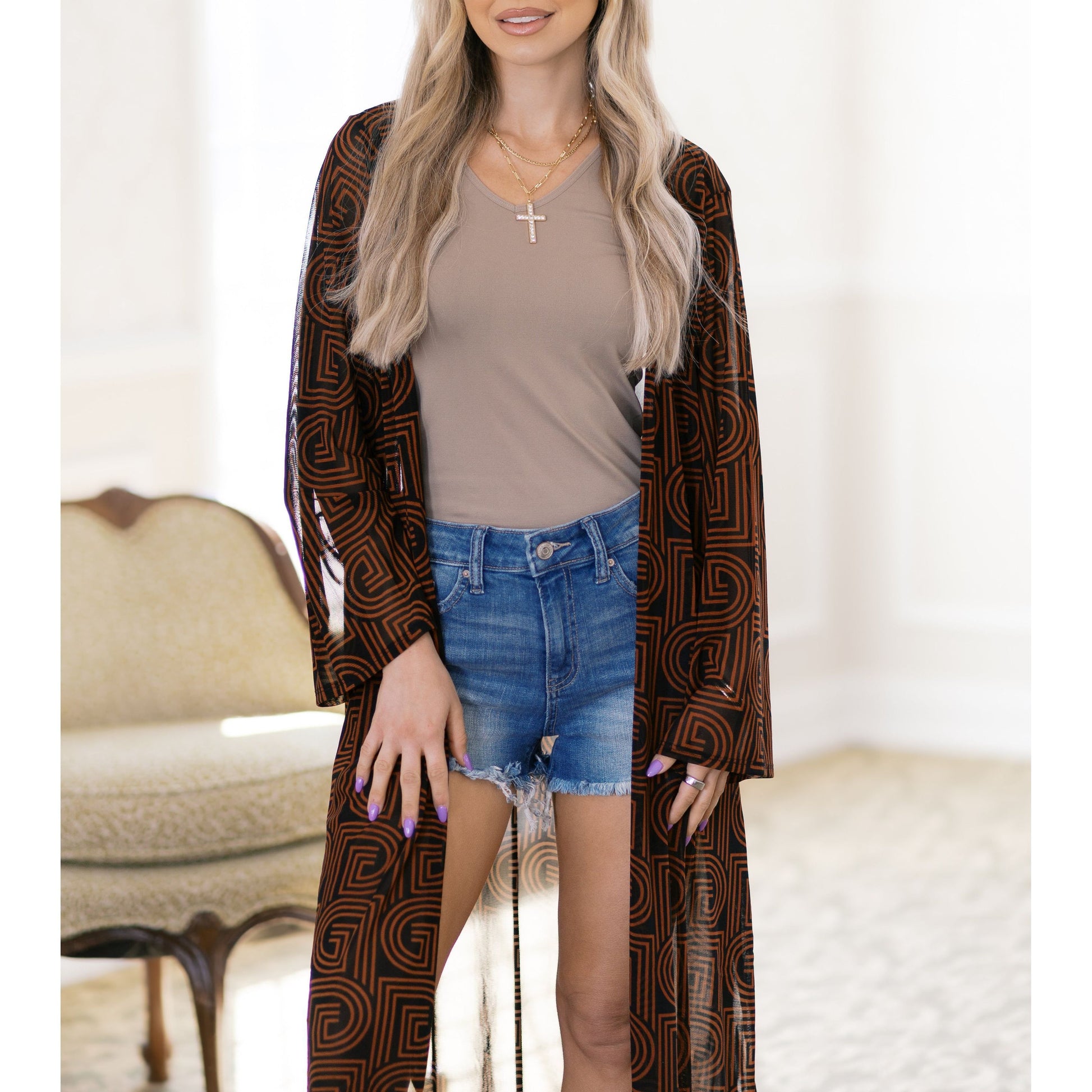 Unleash your inner fashionista with our Mystic Paths Kimono! Made with lightweight and breathable mesh fabric, it offers a comfortable and airy feel. Its long sleeves and maxi length provide coverage while still allowing for a flowy and relaxed fit. Effortlessly layer it over any outfit for a chic and stylish look. Perfect for any occasion, from beach parties to dinner dates.