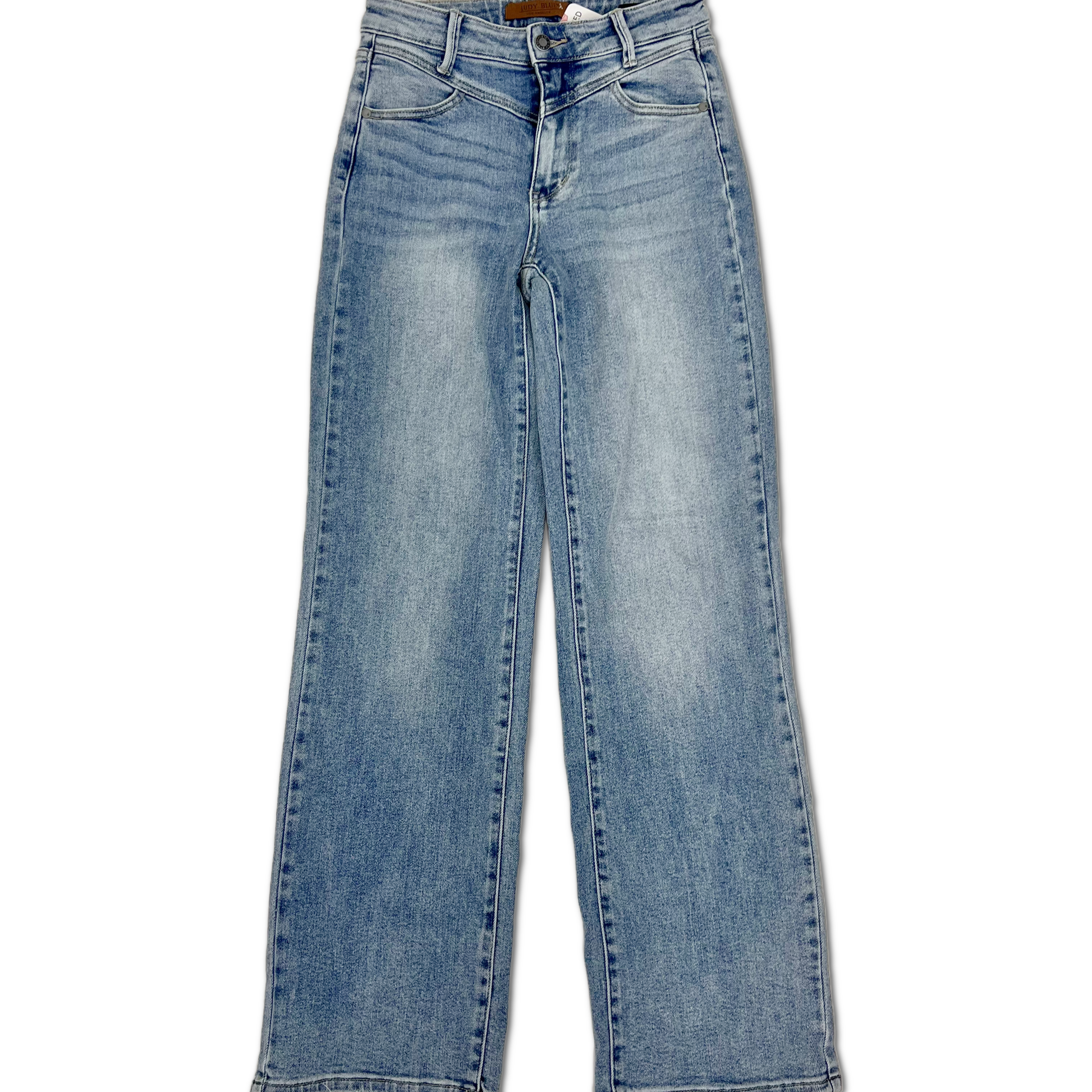 Unleash your retro chic with Never Settle For Less - Judy Blue's. These high-waisted jeans offer great stretch for ultimate comfort, while the front yoke detail adds a touch of unique style. The retro wide leg is perfect for a throwback look with modern comfort. Don't settle for less than fabulous!