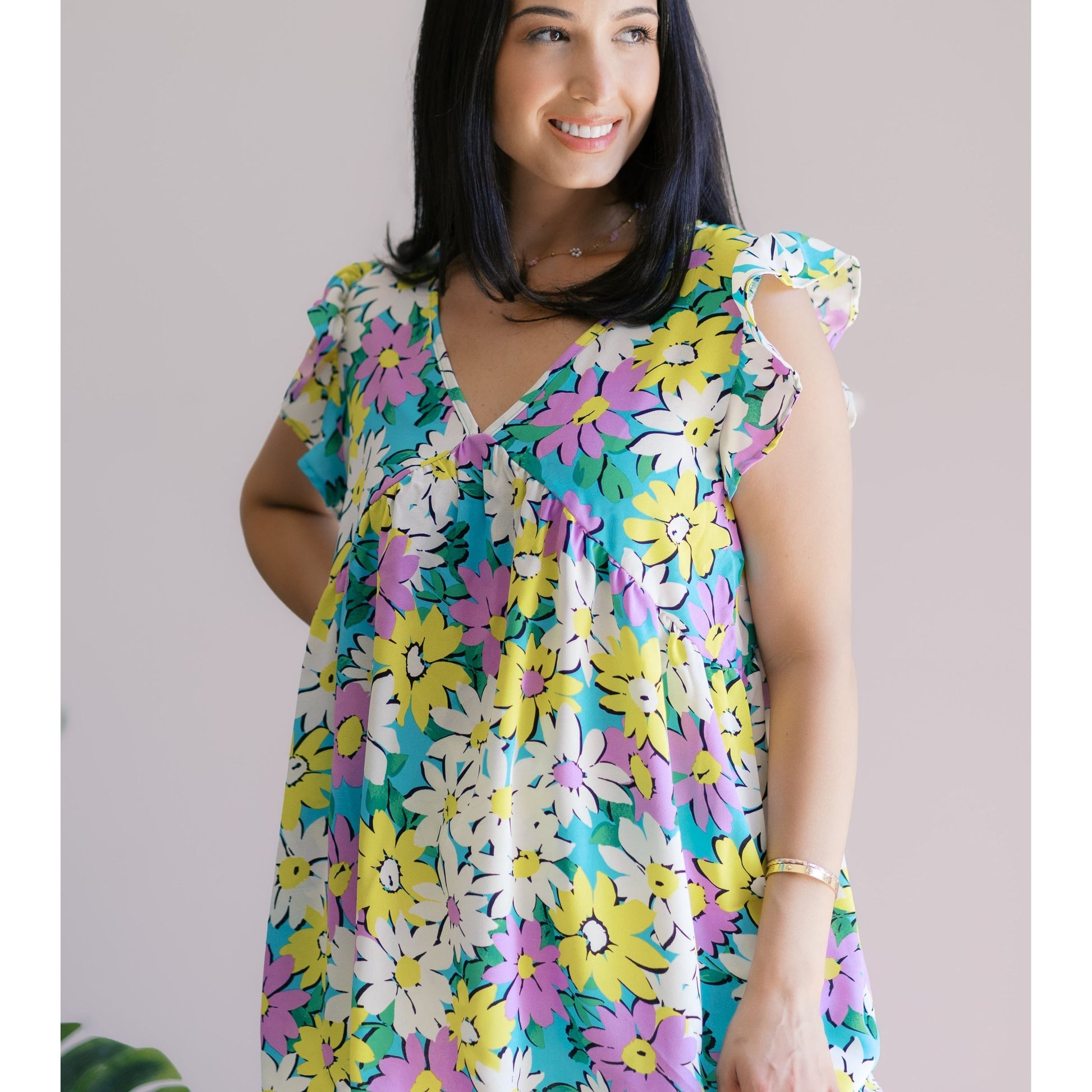 Add some floral fun to your wardrobe with our Petal Party Flutter sleeve! This playful top features a charming petal print, perfect for any springtime occasion. Stay stylish and playful with this quirky piece.