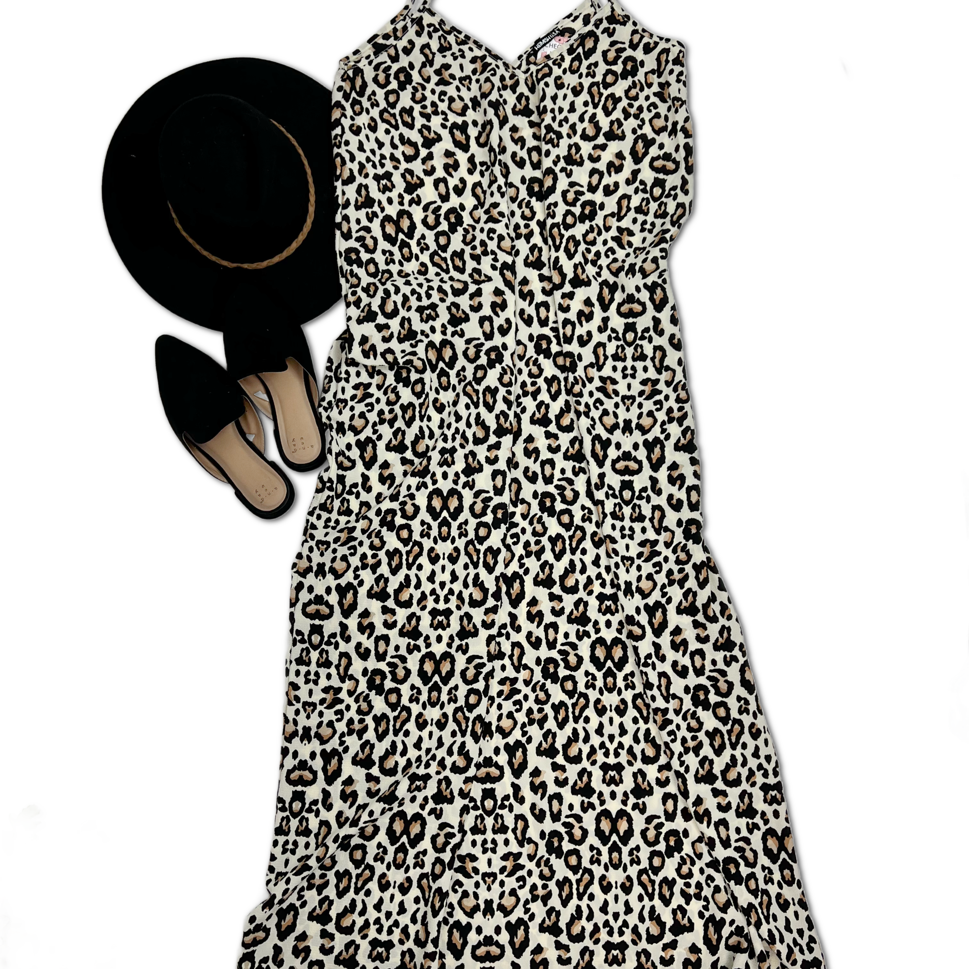 Get ready to unleash your inner fashionista with the See Me Roar Maxi Dress. Its fierce animal print will make you stand out, while the v-neck and spaghetti straps add a touch of flirty charm. With convenient side pockets, this dress is both stylish and functional. Get ready to roar in style!