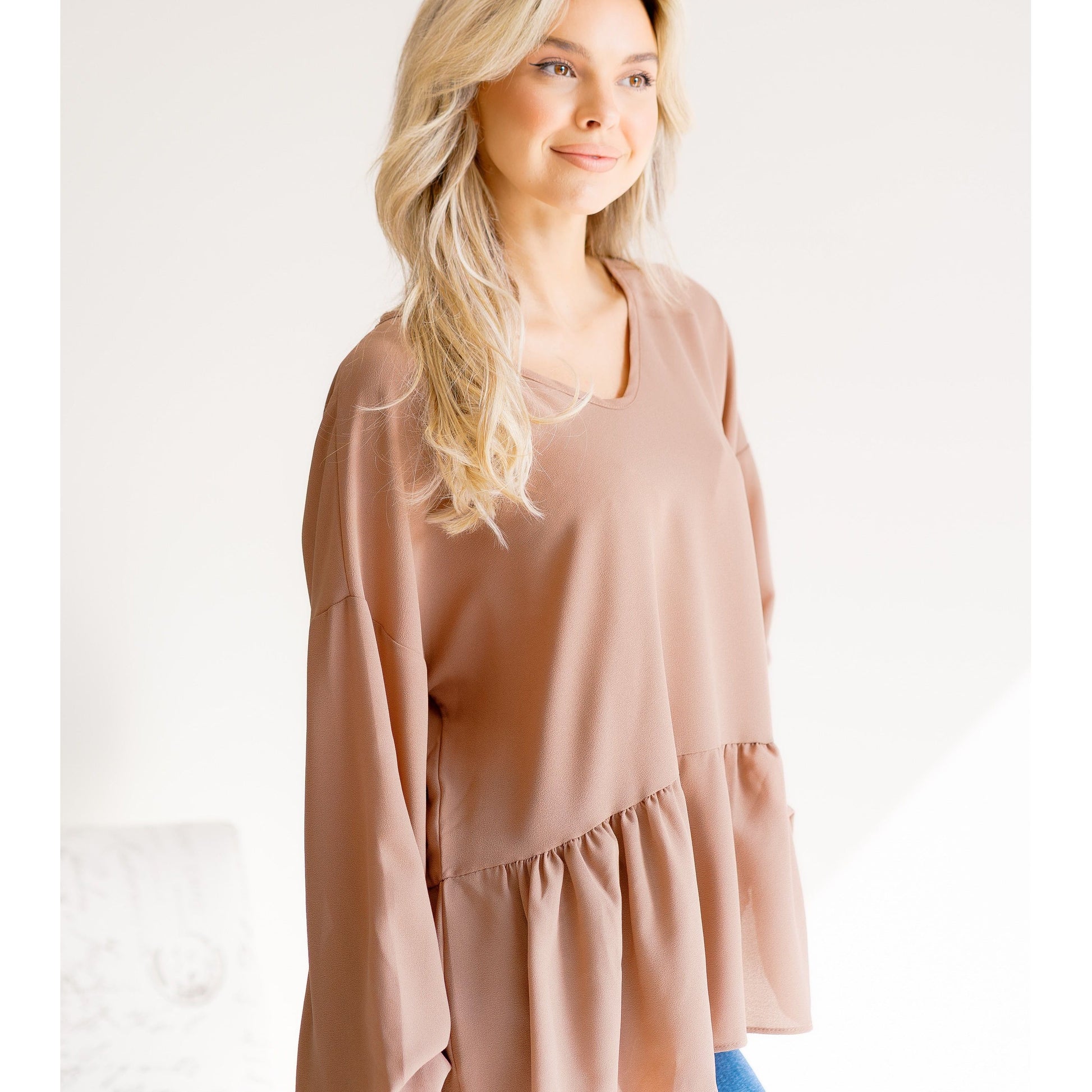 Add a touch of charm with the Truffle Allure Peplum in rich mocha. Featuring playful balloon sleeves and a flattering peplum silhouette, this long sleeve top blends comfort with flirty style. Perfect for dressing up or down, it brings a fun twist to your everyday look!